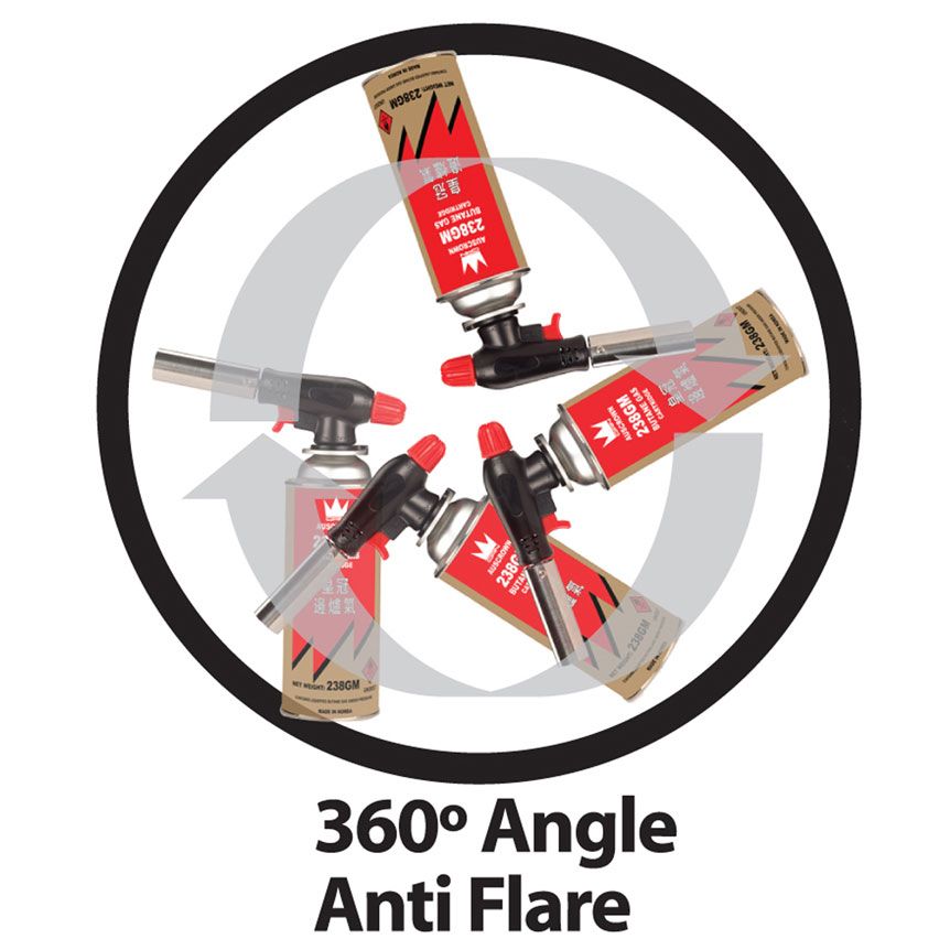 Auscrown's multi-purpose butane gas blow torch features one touch auto ignition with adjustable flame control giving you full control. Our special anti-flare system allows you to rotate the torch in 360 degrees after warming up for 20 seconds.