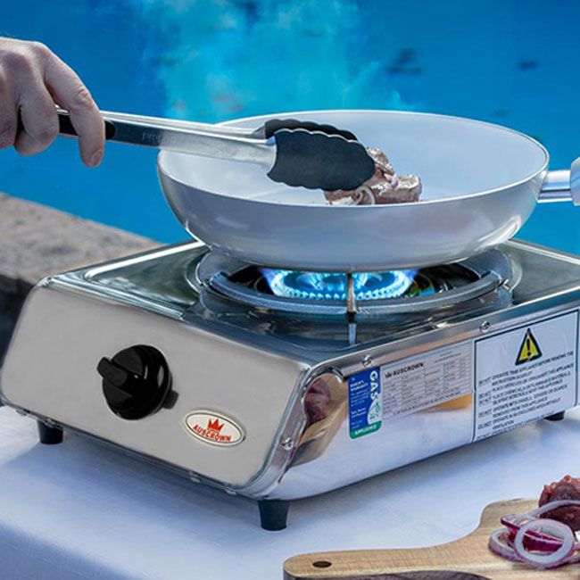 Auscrown's Single LPG Gas Burner with 1.2m hose and LPG regulator.