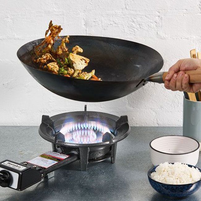 - Recommended wok size Min: 30cm diameter Max: 45cm diameter