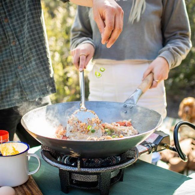 - Sturdy cast iron trivet offers great stability for pots, pans and woks