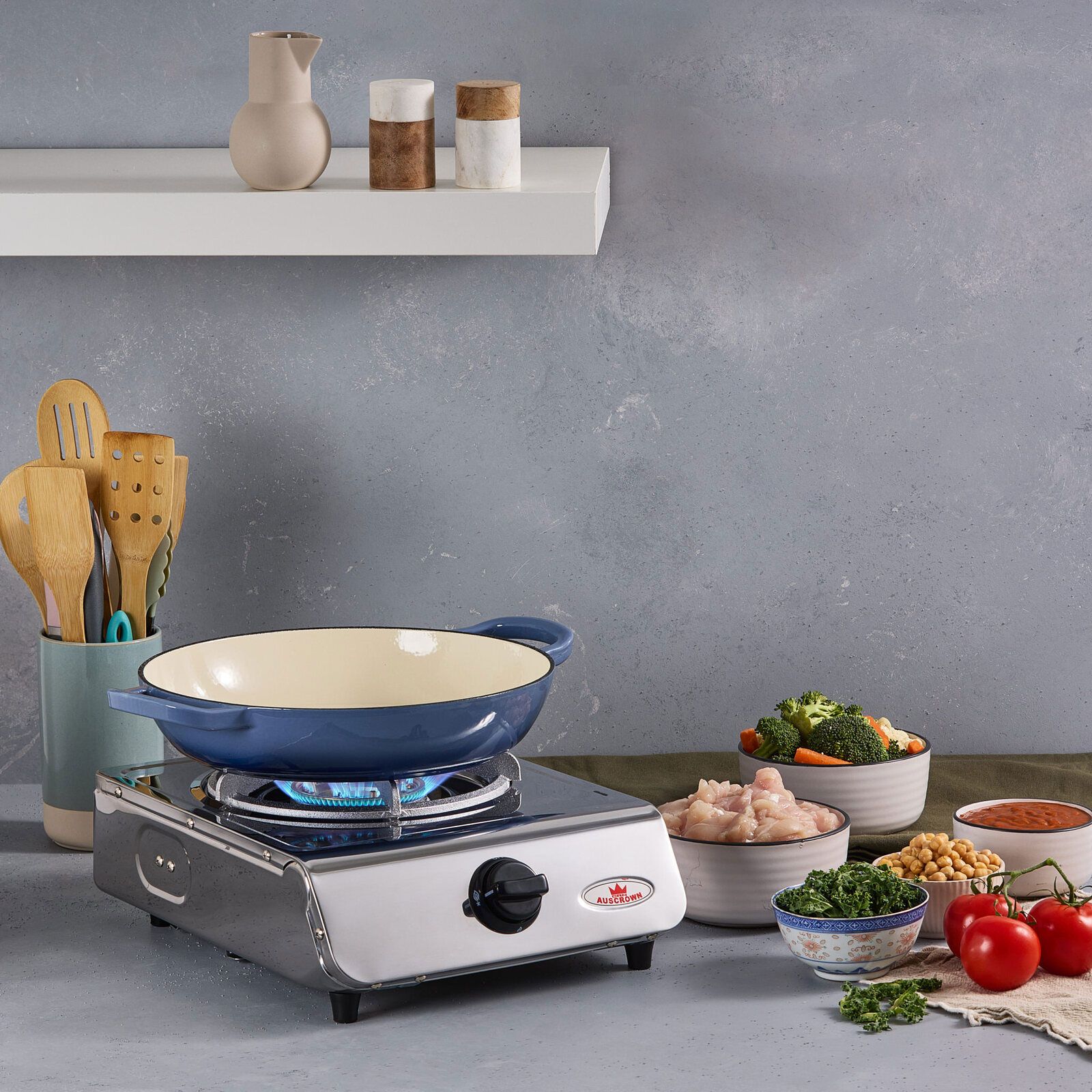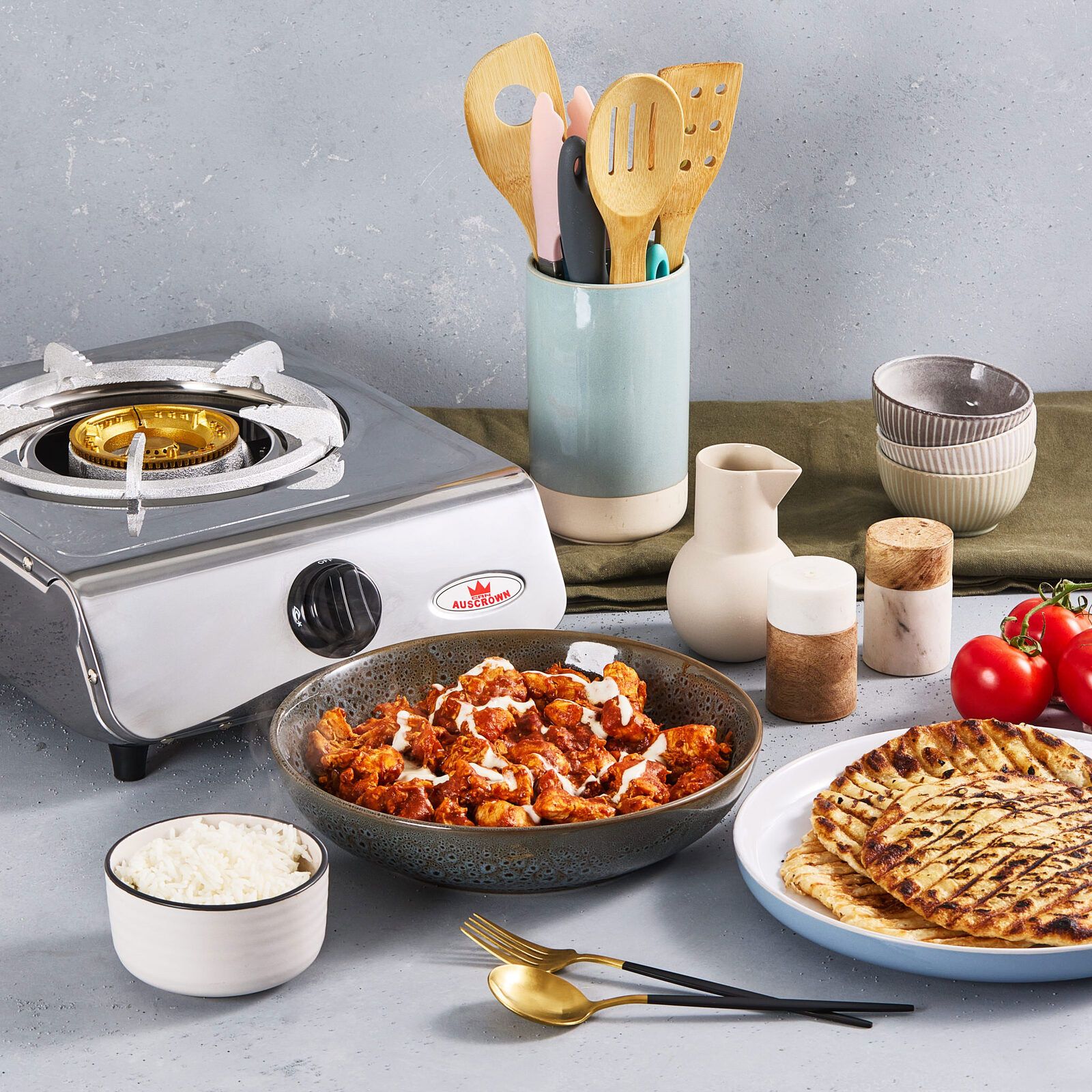 Auscrown Natural Gas Wok Burner + Cast Iron Trivets & Brass Caps