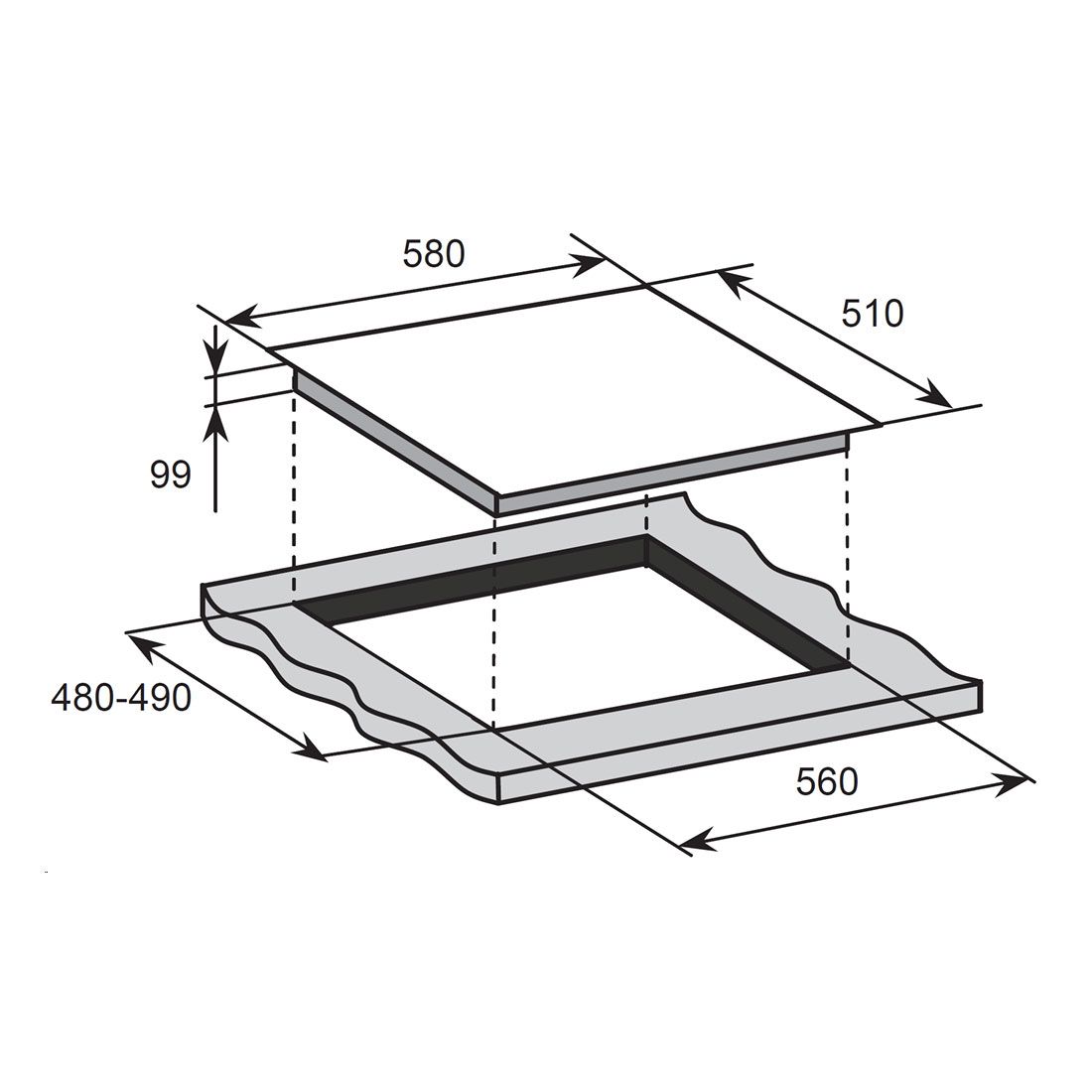 - Cut Out Dimensions 560mm W x 480 - 490mm D