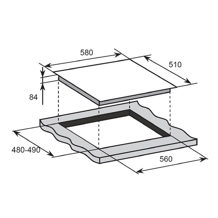 - Cut Out Dimensions: 560mm (W) x 480mm-490mm