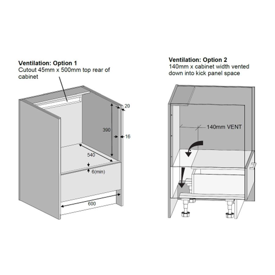- Cut-Out Dimensions: 600mm (W) x 390mm (H) x 600mm minimum (D)