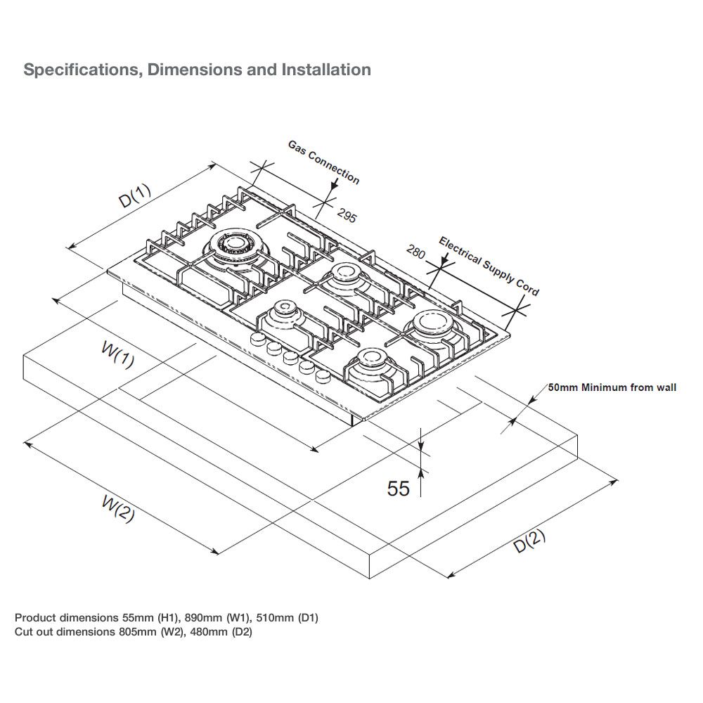 - Cutout Dimensions: 805mm (W) x 480mm (D)