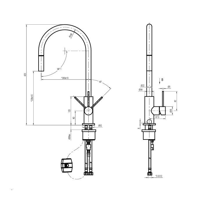 - Mixer Height: 425mm