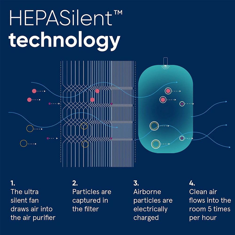 Our unique combination of electrostatic and mechanical filtration that we call HEPASilent filtration technology sets us apart. The combination allows us to use filters that are less dense and require less air pressure than traditional HEPA filters without a loss in performance— resulting in quieter and more energy efficient air purifiers.