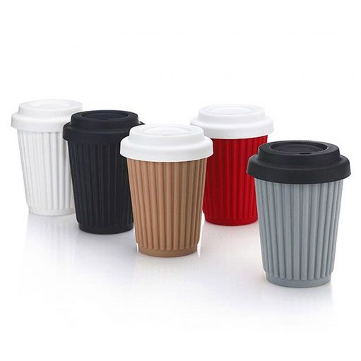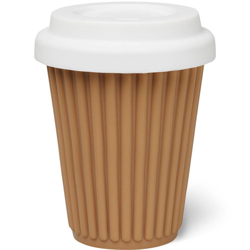 BYO Silicone Coffee Cup 340ml / 12 Oz in Coffee with White Lid