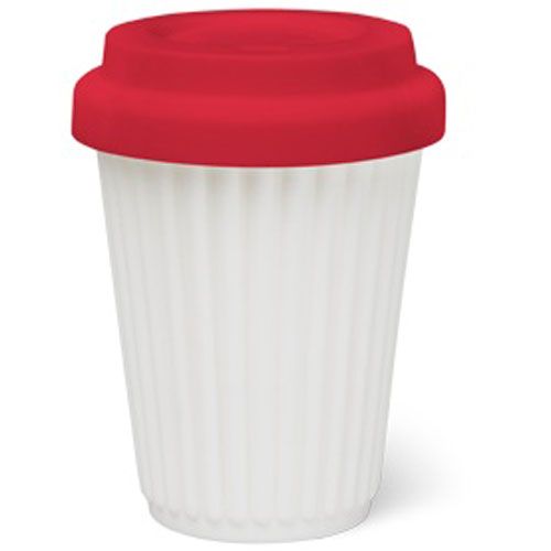 BYO Silicone Coffee Cup 340ml / 12 Oz in White with Red Lid