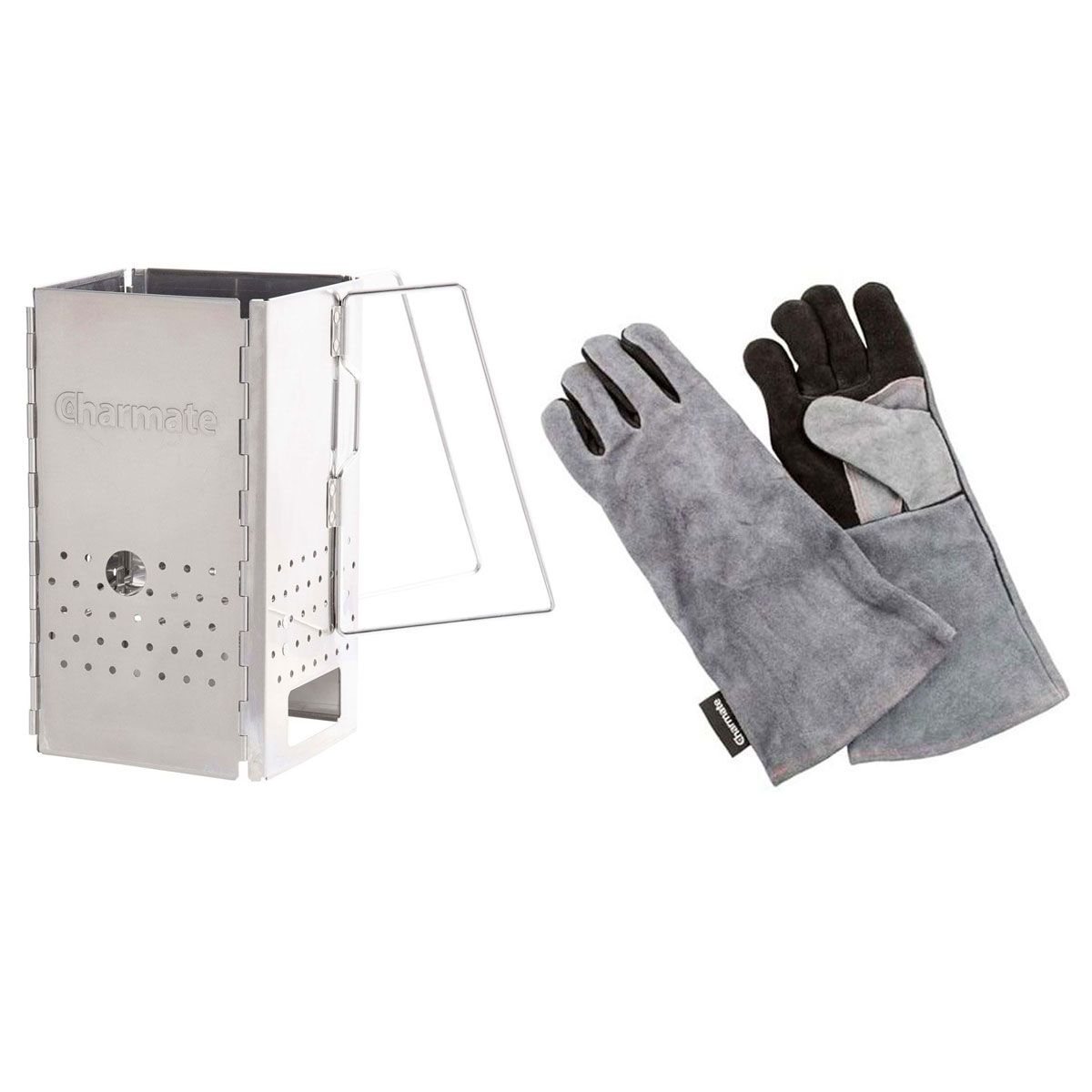 Charmate Collapsible Charcoal Starter with Carry Bag + Charmate Gloves