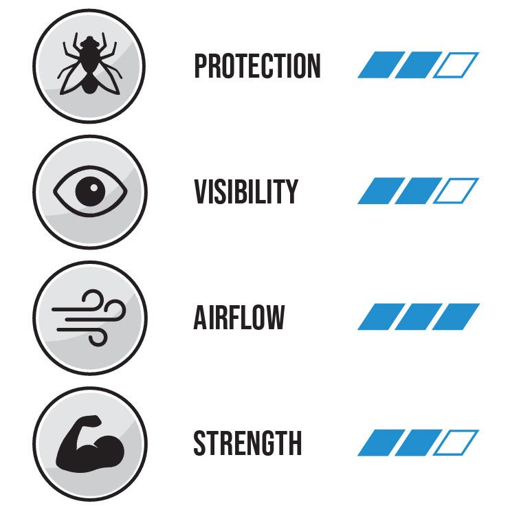 Cyclone Aluminium flyscreen has been developed using a patented advanced weave technology to provide consistency and precision. Featuring a premium ESD (Electrostatic Deposition) coating to offer superior toughness and longevity whilst maintaining a fine, crisp finish.