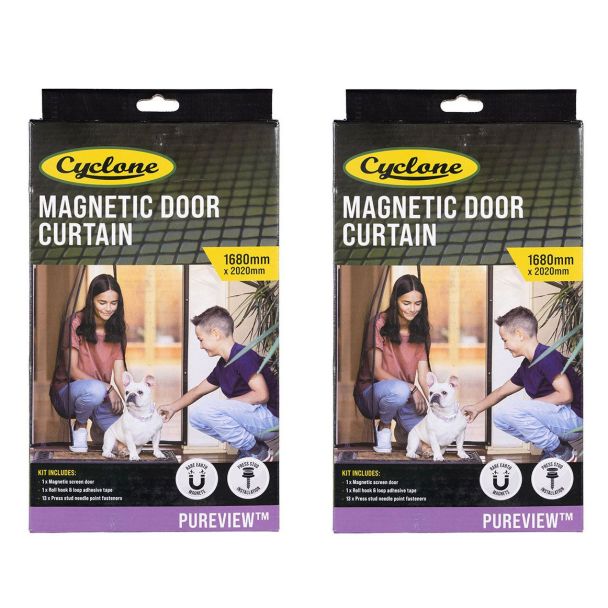 Cyclone Pureview Magnetic Insect Fly Screen Door Curtain 1680mm x 2020mm Pack of 2 [ 30122378x2 ]