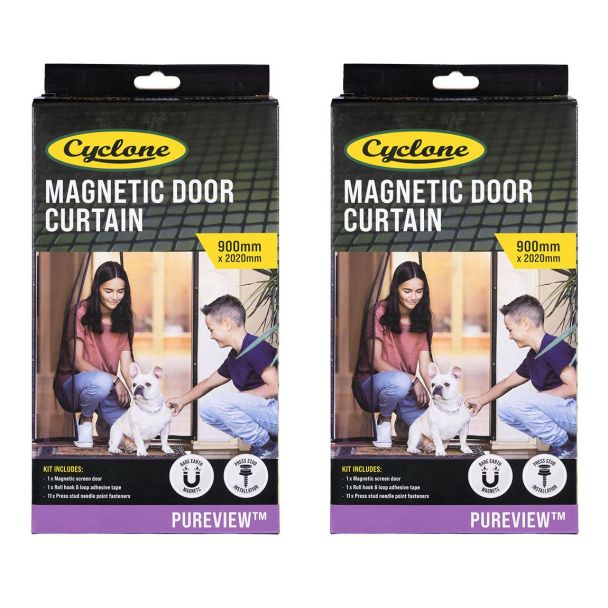 Cyclone Pureview Magnetic Insect Fly Screen Door Curtain 900mm x 2020mm Pack of 2 [ 30123252x2 ]