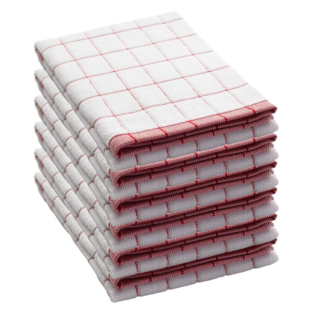 There is no need to wipe surfaces repeatedly. All you need are our ultimate Tea-Towels to dry with one wipe and leave everything sparkling, streak and grease free.Pack of 6 Tea Towels (red check colour)