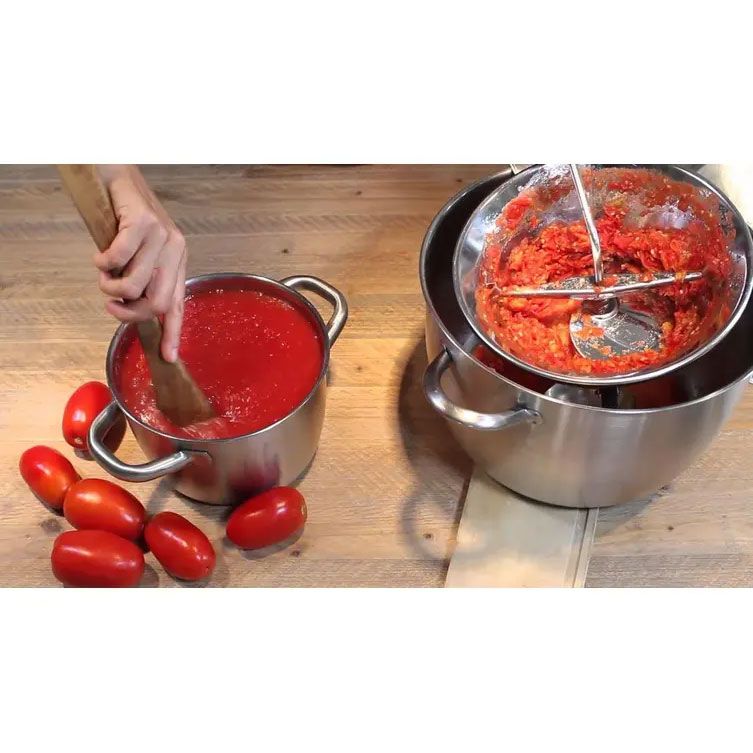 - Three interchangeable plates - the size of the plate used is very much personal preference but as a guide: The fine disc is for homemade preserves, creamy sauces and baby food, the medium disc for apple sauce and vegetable soups, and the coarse disc for tomato passata, mashed potatoes and chunkier sauces.