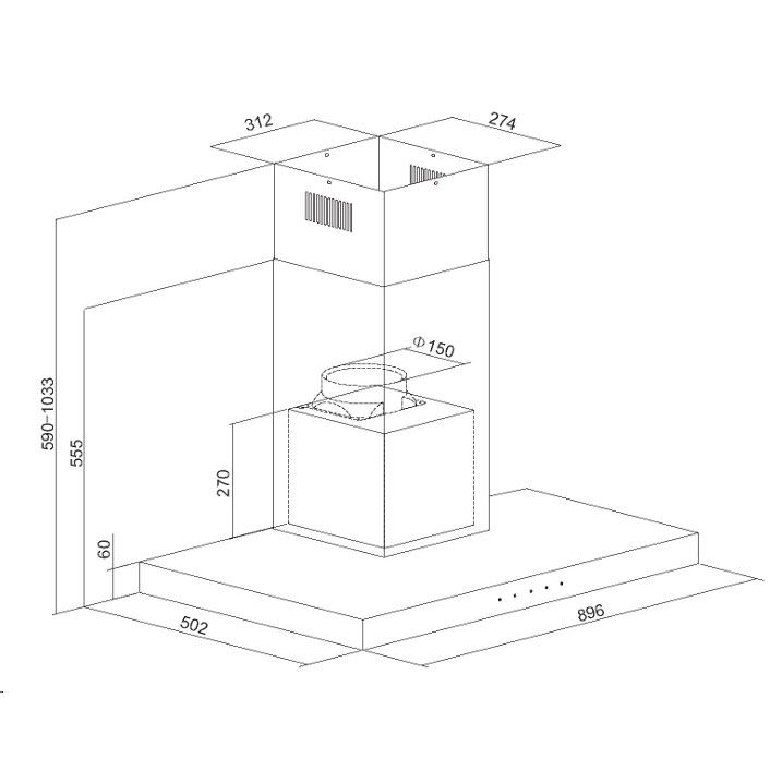 - Dimensions: 896mm (W) x 590-1033mm (H) 502mm (D)