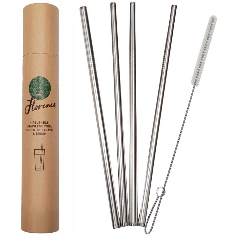 Florence Stainless Steel Sustainable Smoothie Straws 4 Pack with Cleaning Brush [ FO1809 ]