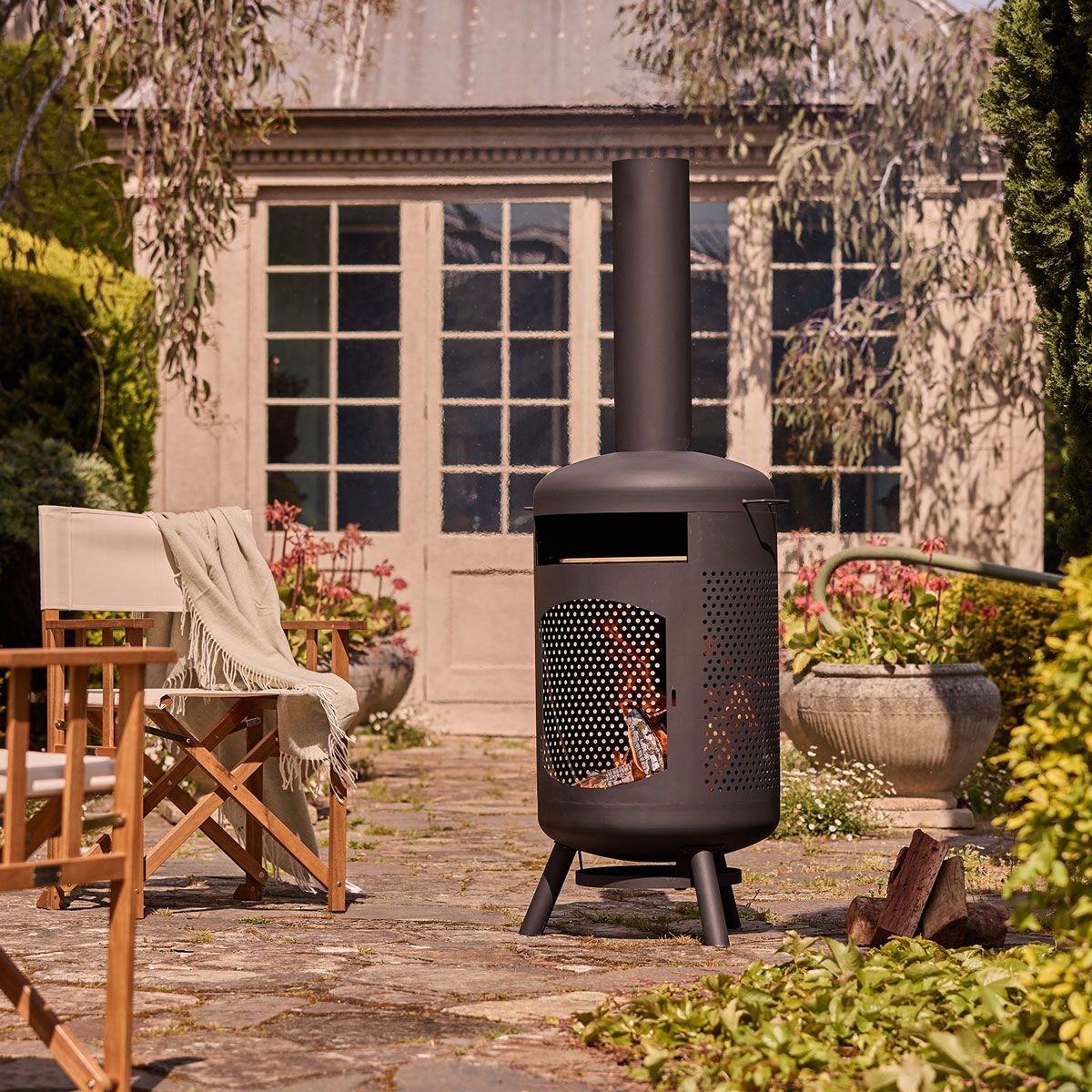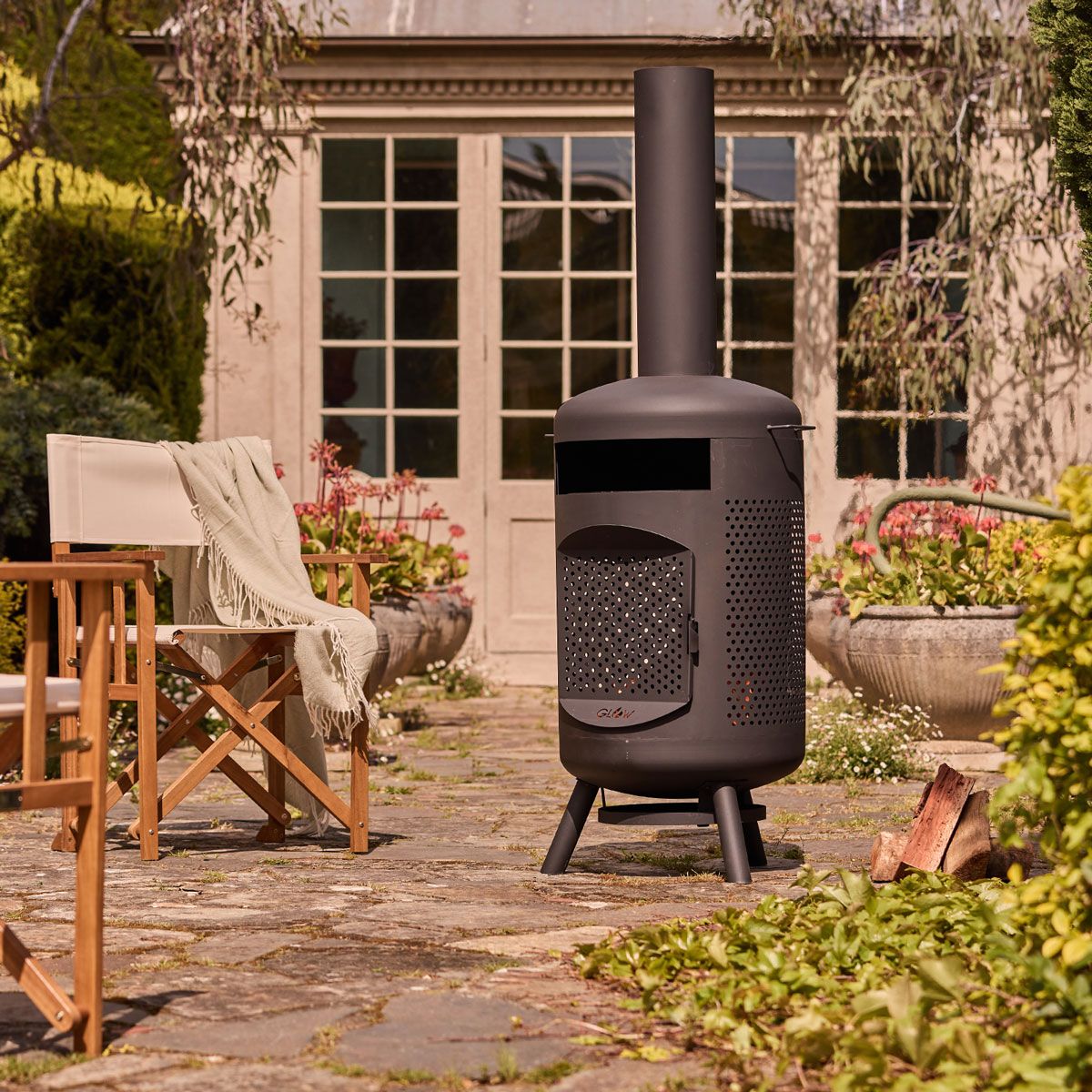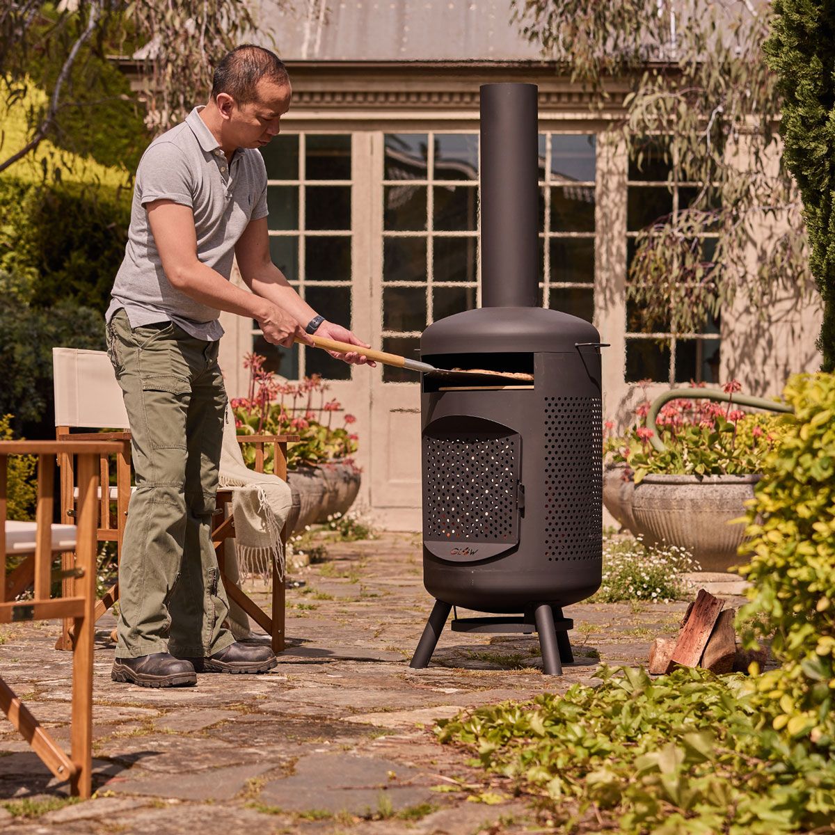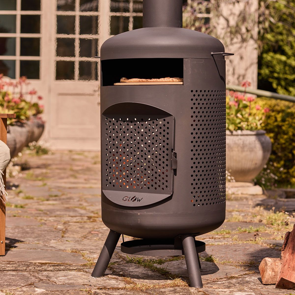 Glow Roma Chimenea with Pizza Cooking Oven in Black
