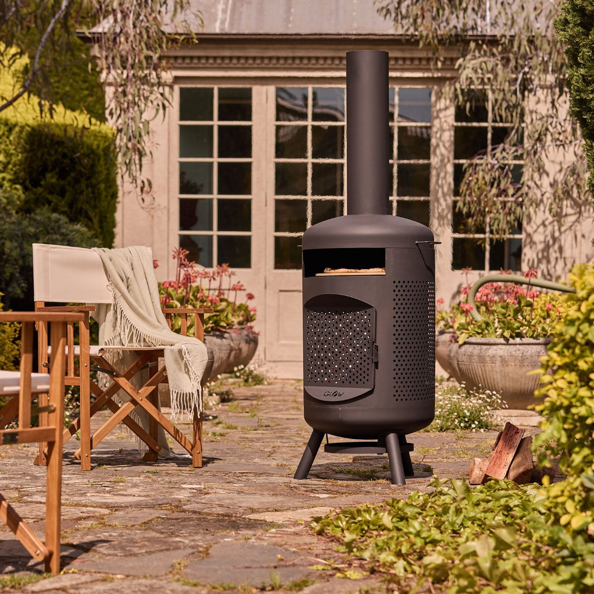 Glow Roma Chimenea with Pizza Cooking Oven in Black [ GLOW2507 ]