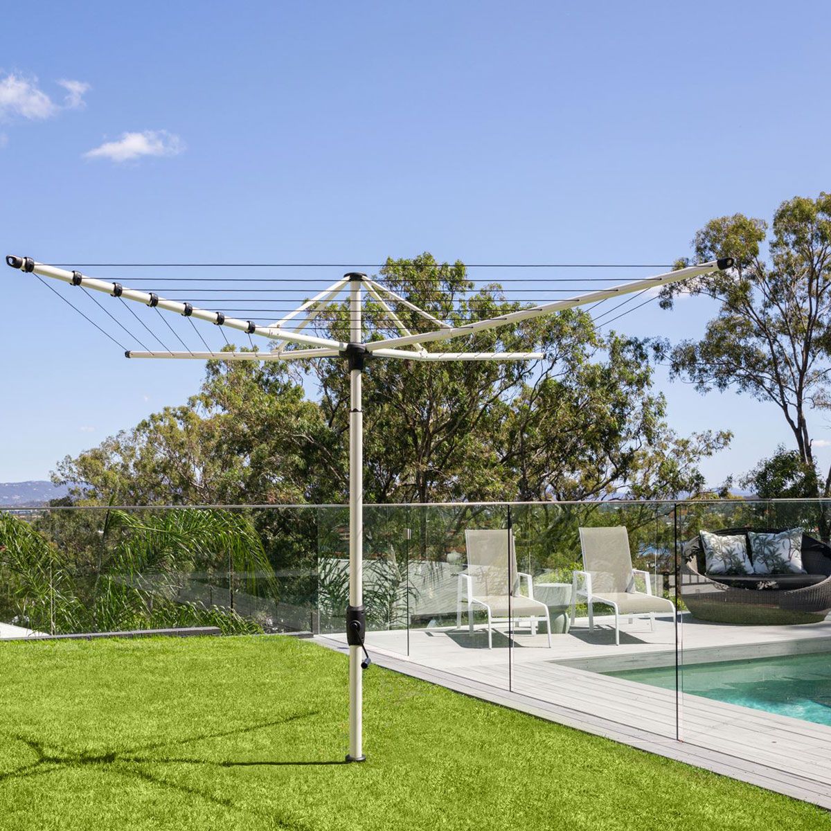 Hills Rotary Clotheslines are the modern day alternative to the Hills Hoist. These top of the range clotheslines are equipped with the latest innovations and can be folded away and removed from the ground when not in use to give your garden space back. This models 3.6m head diameter is designed for medium to large yards, offering 7 lines, 48m drying space and 70kg weight capacity, which is ideal for a Large sized family. We back this product to stand the test of time with Hills Lifetime Warranty.