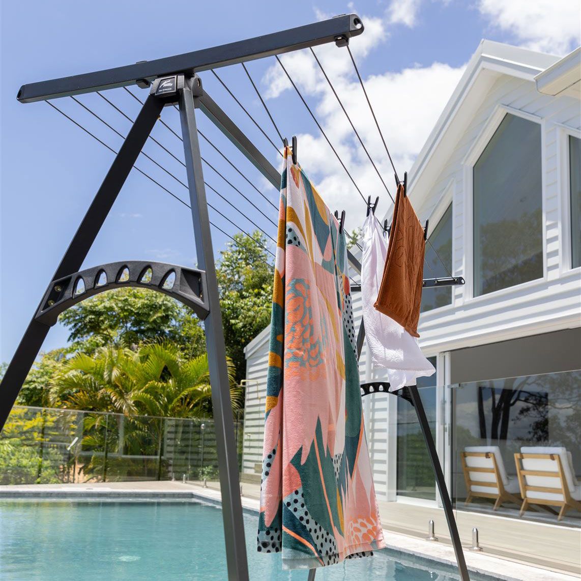 Hills Portable 170 Clothesline is an innovative indoor/outdoor drying solution that bridges the gap between conventional outdoor clotheslines and indoor clothes airers. Its tall height and 1.7m long uninterrupted lines are perfect for towels and sheets, and the 17m drying capacity is ample for the largest washing load. We back this product to stand the test of time with Hills Lifetime Warranty.