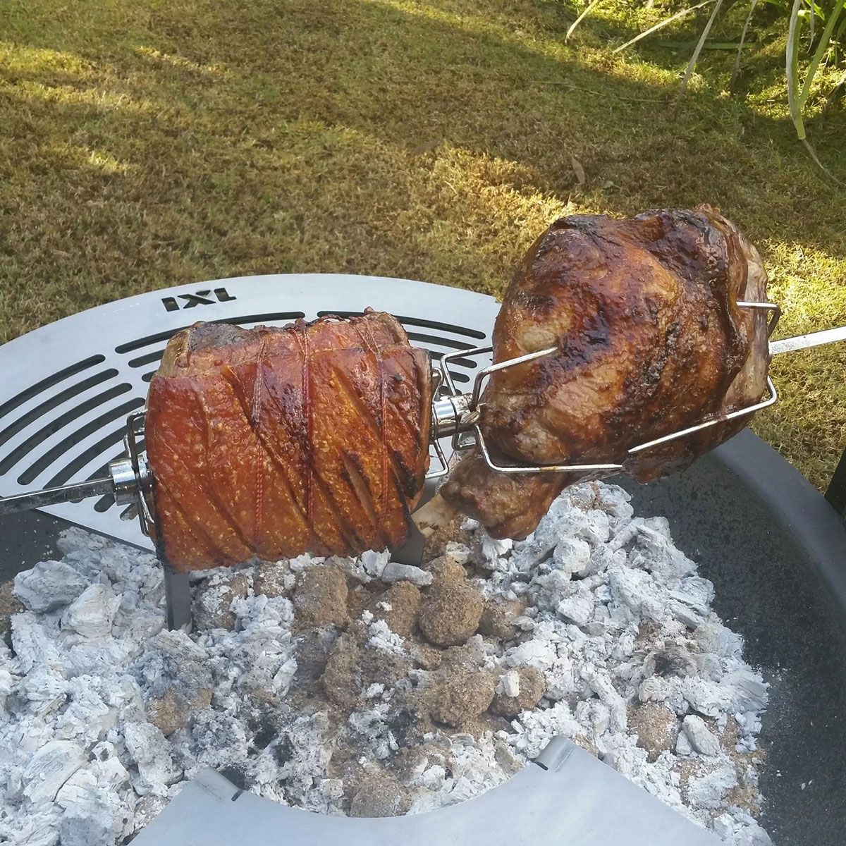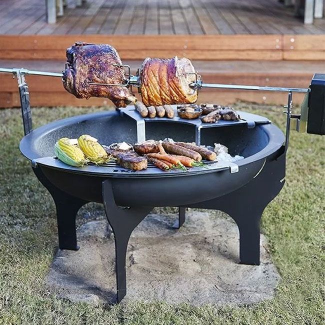 A must have fire pit, grill and rotisserie capable unit. Allowing you to have an open flame fire, rotisserie function and a BBQ all in the one unit.