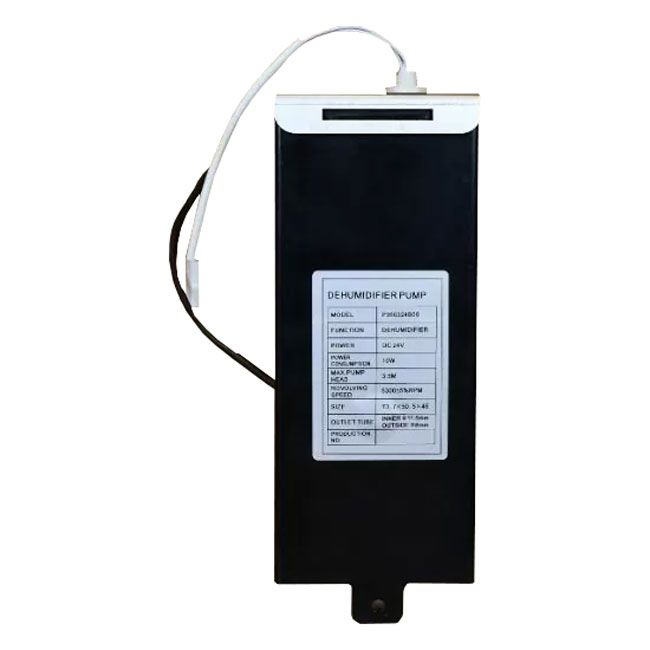 Innovative Dehumidifier Systems offers an optional Integrated Condensate Pump for the IW25-5 In Wall / On Wall home dehumidifier. The integrated condensate pump was designed for automatic collection and removal of condensate when gravity drainage is not possible or practical. The IDS built-in condensate pump can pump 3 metres vertically, and 4.5 metres horizontally. The optional condensate pump easily installs directly into the IW25-5 dehumidifier unit for tamper-proof control. Used when gravity draining is not an option the dehumidifier drain pump sits in base of unit, with automatic restart/shut off in case of power outages/overflow.