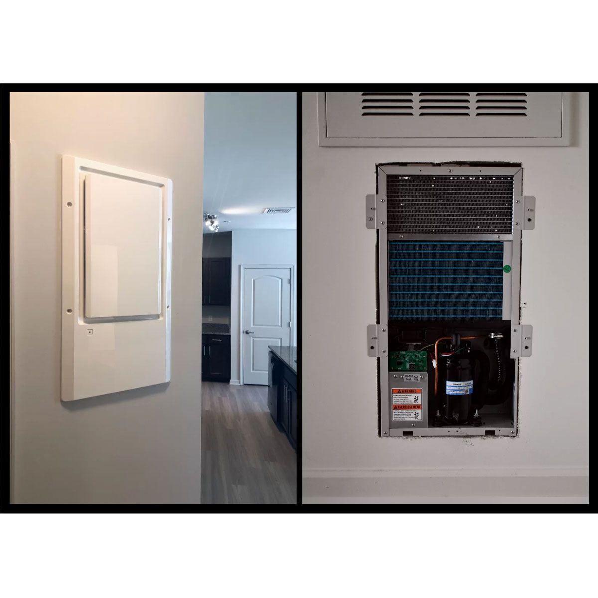 IW25-5 In-Wall Dehumidifier with combined Bi-Polar Ionization Technology is recessed and fits in a fabricated wall or through a 90 x 35mm stud wall. For semi-recessed applications, an IDS Exterior Sleeve (sold separately) can be used. It will require a licenced electrician and plumber for installation.