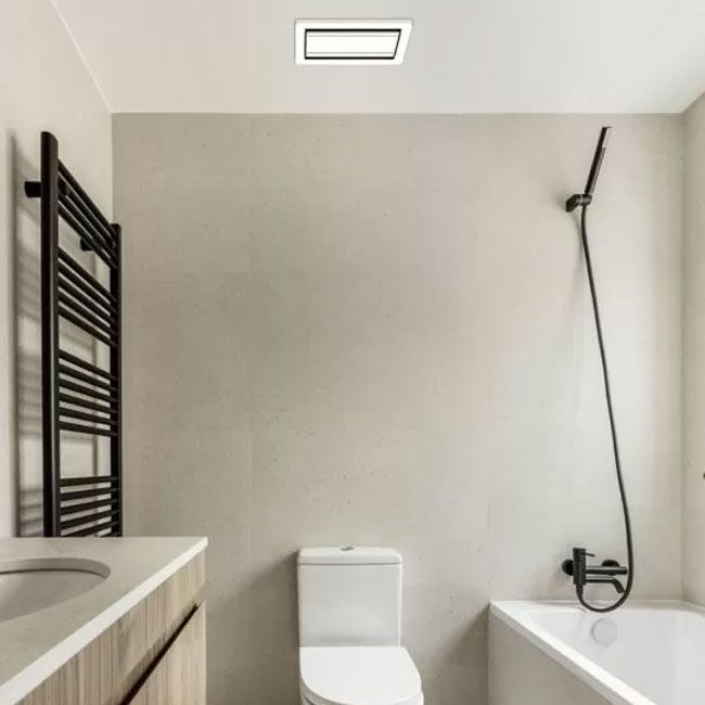 Tastic Luminate Essential Vent Module is suitable for above shower installation with an IPX4 rating. Position it over the shower to remove steam and moisture, and to banish odours effectively without the need for a bulky extraction fan.