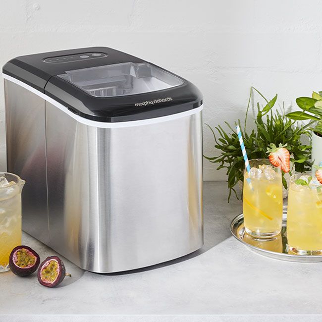 Constructed from hygienic, food grade stainless steel, the Morphy Richards Ice Maker can make 10 ice cubes every 9 minutes, depending on the water and ambient temperatures.