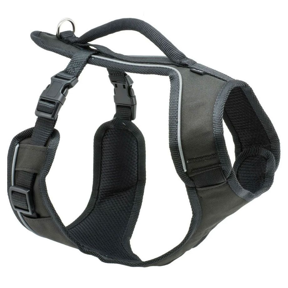 The EasySport Harness is fully adjustable and padded throughout, providing ultimate comfort for dogs. The nylon material and elasticised neckline allow for a cosy fit, while the 2 quick snap buckles make the harness easy to get on and off. The top handle provides an extra degree of safety when you need to control your dog quickly. Ideal for everyday wear, the EasySportâ„¢ Harness lets dogs enjoy life's adventures in comfort and style.PetSafe ESPH-L-BK-19