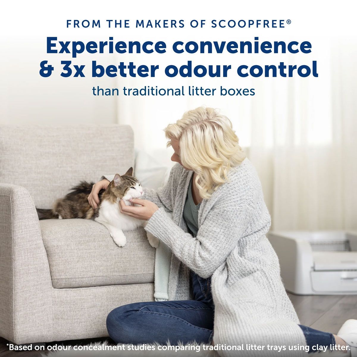 No need to switch your cat’s favourite litter to enjoy the ScoopFree experience! Our newest automatic litter box is now compatible with clumping litter welcoming you and your cats to the ScoopFree family. Simply fill the litter tray with your cat’s preferred litter and watch your new self-cleaning litter box work its magic, making your life easier and happier.