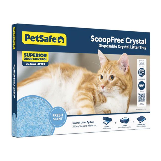 Each ScoopFree Disposable Crystal Litter Tray is pre-filled with Fresh Scent premium crystal cat litter, so all you have to do is load the tray in the litter box with no scooping, cleaning or refilling for weeks! Crystal litter absorbs urine and dries solid waste to quickly remove odours 5 times better than clumping clay litter.