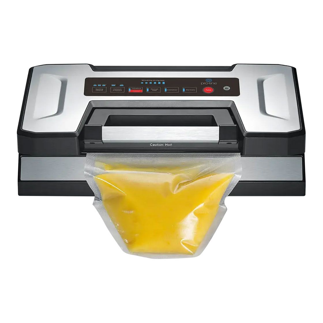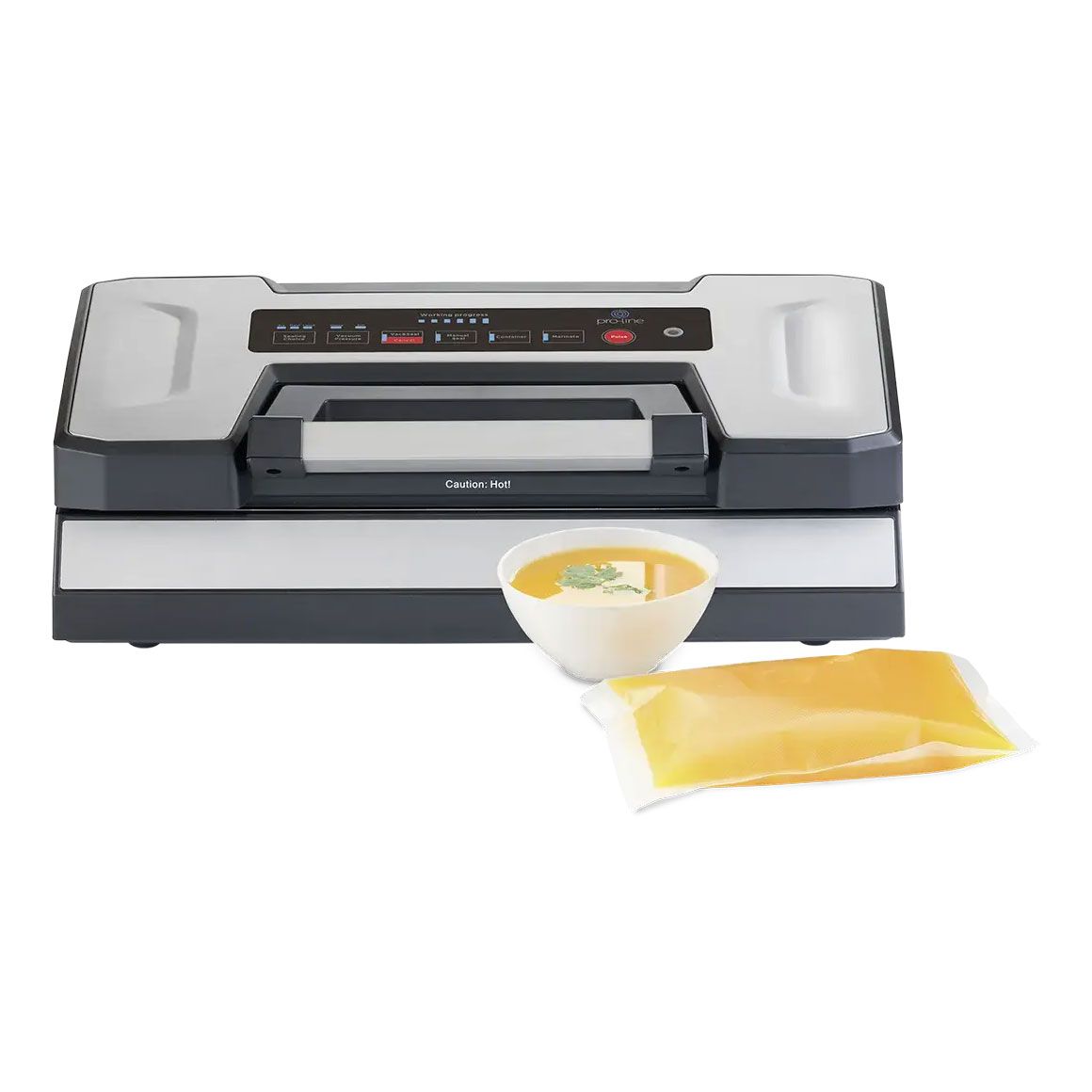 The ultimate solution for sealing soups, sauces, and stocks with its intelligent liquid function. Featuring a convenient internal roll holder and cutter, a sleek sensor touch panel with LED display and progress bar, and high-quality stainless steel construction with an anti-fingerprint coating.