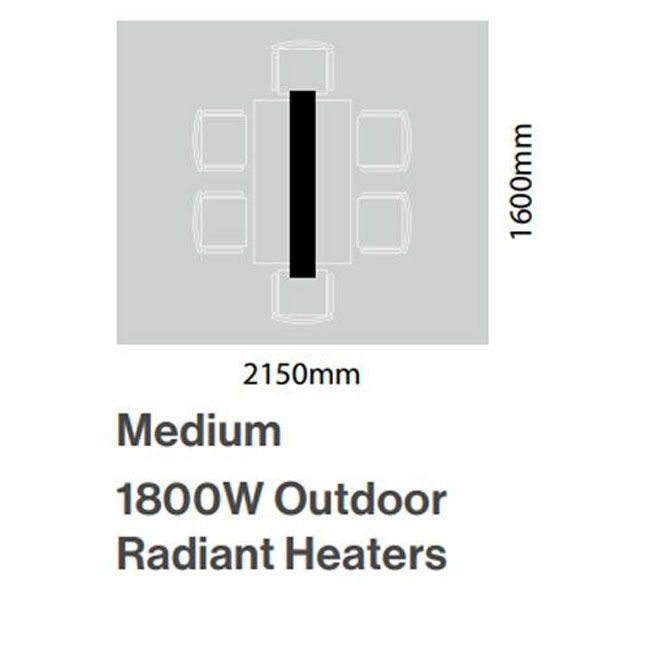 When deciding what size is most suitable for your area, it’s important to remember how these heaters work – by providing direct warmth to objects and people in its path. For instance, you may have a large space but really only use the area around your outdoor furniture, therefore it would be more efficient to heat the area around the furniture as opposed to the entire space.