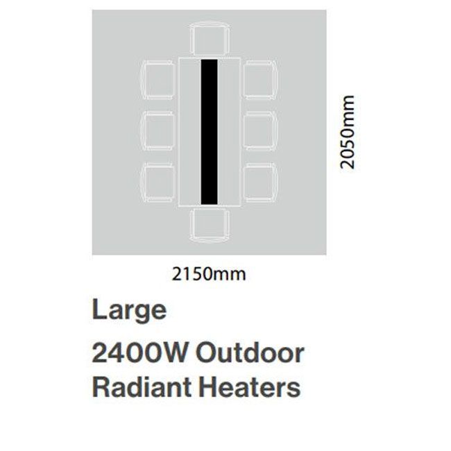 When deciding what size is most suitable for your area, it’s important to remember how these heaters work – by providing direct warmth to objects and people in its path. For instance, you may have a large space but really only use the area around your outdoor furniture, therefore it would be more efficient to heat the area around the furniture as opposed to the entire space.