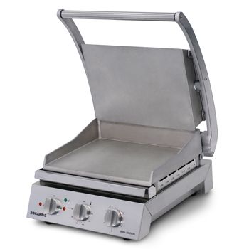 Featuring elements embedded directly into smooth, high pressure die-cast aluminium plates, the cooking surface produces an even, extremely efficient heat transfer ensuring food is cooked rapidly with even colouration. The Roband Grill Station truly is a must-have for cafes, takeaways, sandwich shops or anywhere that toasting and/or grilling is required.