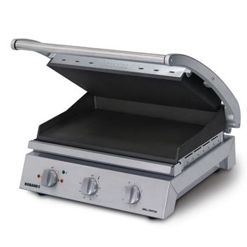 Featuring elements embedded directly into smooth, high pressure die-cast aluminium plates, the cooking surface produces an even, extremely efficient heat transfer ensuring food is cooked rapidly with even colouration. The Roband Grill Station truly is a must-have for cafes, takeaways, sandwich shops or anywhere that toasting and/or grilling is required.