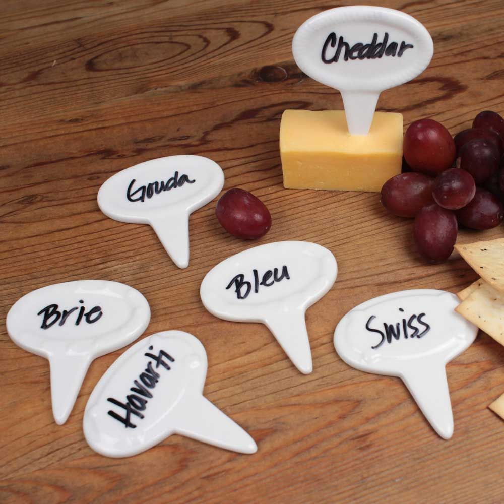 RSVP Porcelain Cheese Lables / Signs + Black Ink Pen [ RVOVAL ]