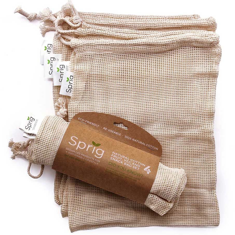Sprig Sustainable Range Cotton Drawstring Produce Bags 12 Pack