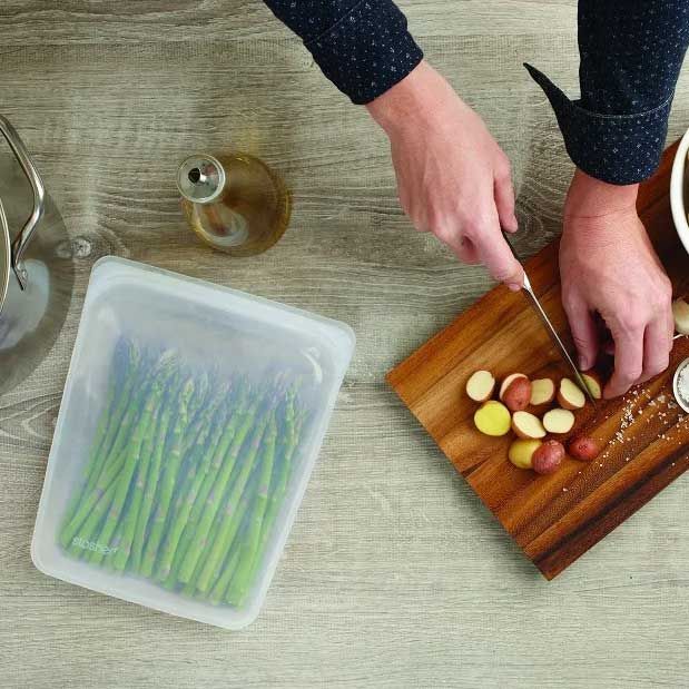 Stasher's bags are carefully constructed from pure platinum silicone, making it food safe and incredibly durable for everyday use in a variety of situations. From storing to even sous vide cooking with it, the Stasher bag can do it all!