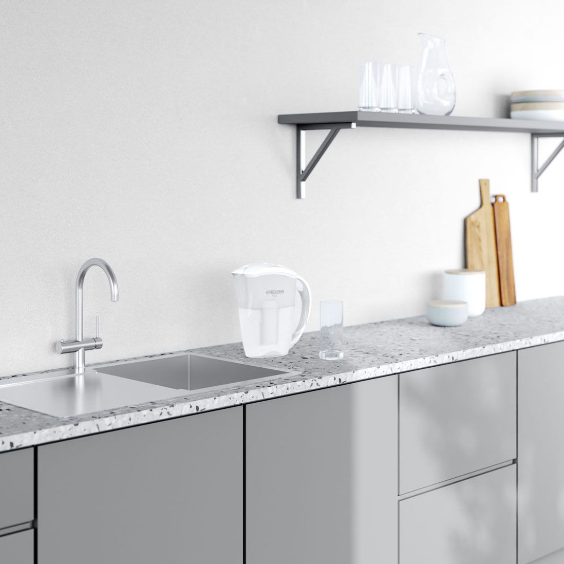 With a compact shape that can fit into your fridge for better taste and with lifetime indicator, the Flow water filter pitcher provides you drinking water at maximum convenience.