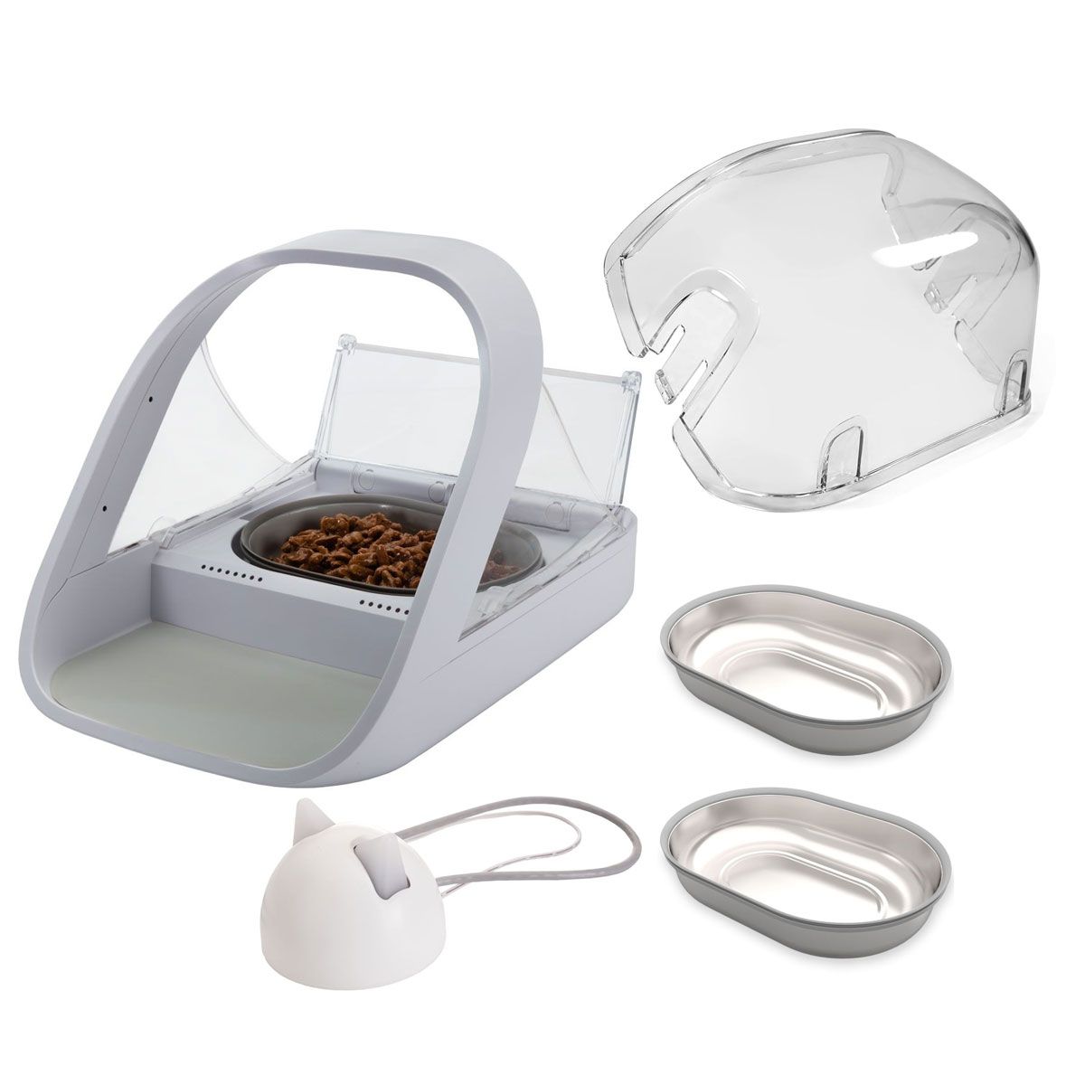 - Pack includes SureFeed Microchip Feeder Connect, 1 x hub, 1 x rear cover, 2 x metal bowls, 1 x RFID collar tag, 1 x grey bowl, 1 x grey split bowl and 1 grey mat.