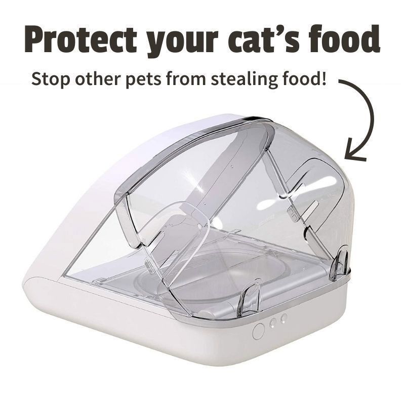 Ensure persistent pets can't access food from the rear of the Microchip Pet Feeder while the lid is open.