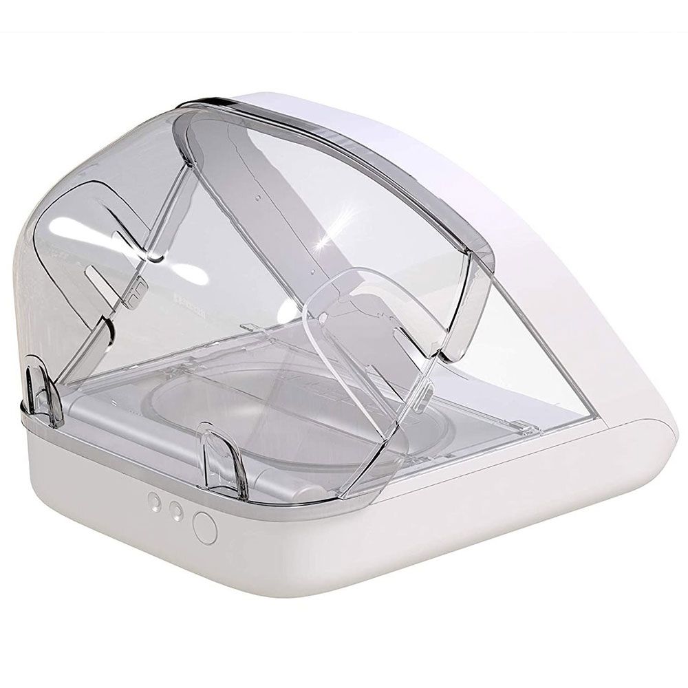 Ensure persistent pets can't access food from the rear of the Microchip Pet Feeder while the lid is open.