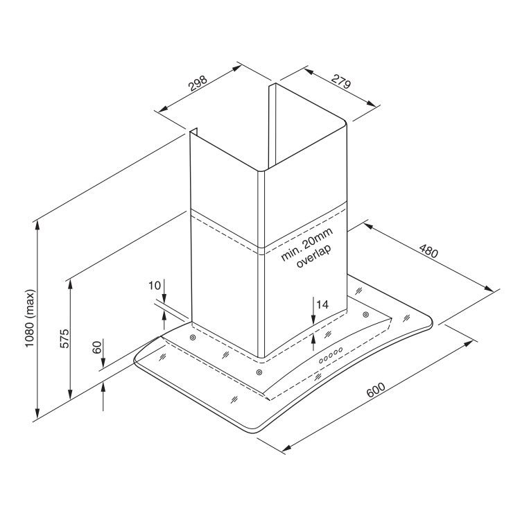 - Dimensions: 600mm (w) x 575mm-1080mm (H) x 480mm (D)