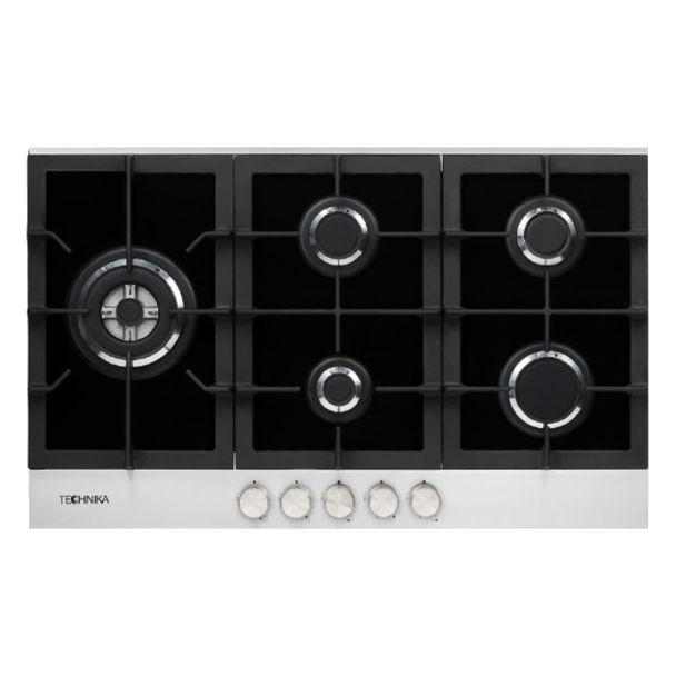 Technika 90cm 5 Burner Black Glass & Stainless Steel Gas Cooktop