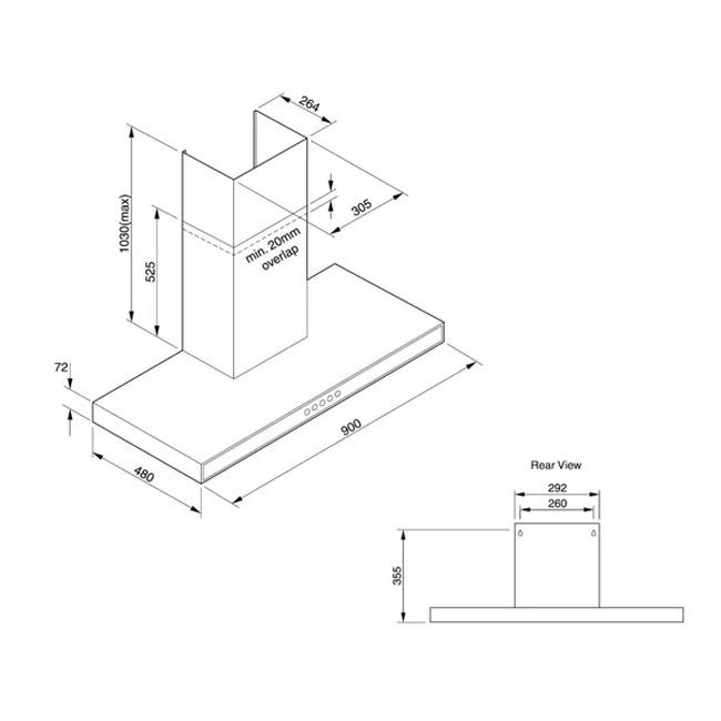 Note: Install Rangehoods in accordance with the manufacturer’s instructions. Technika recommends that all Rangehood clearances be a minimum of 650mm to a maximum of 750mm (between the top of the cooking surface and to the underside of the rangehood). Distance may be reduced to 600mm to align with AS/NZS 5601.1: 2013.