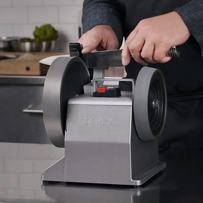 Tormek T-2 Pro Kitchen Knife Sharpener is a knife sharpening system adapted and certified for commercial use. Work in restaurant kitchens, industrial kitchens, or meat processing is often fast-paced and results-oriented. The Tormek T-2 Pro Kitchen Knife Sharpener gives you perfectly sharpened knives in a matter of minutes.