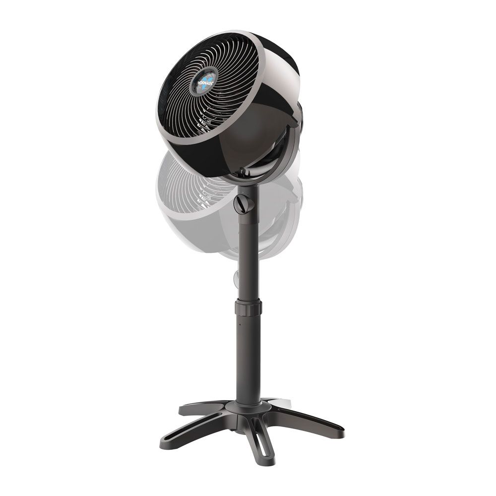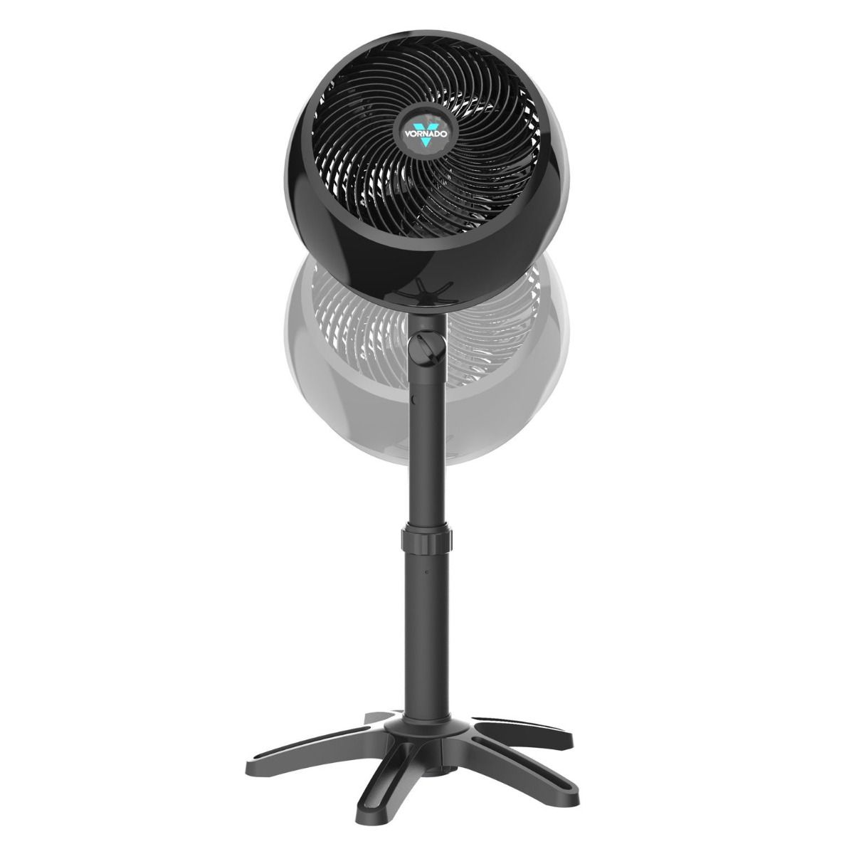 The 3-speed front-facing control allows for quick and easy speed selection. The Vornado 7803 Large Pedestal Air Circulator features an easy-to-assemble, tool-free base that is designed for quick setup, pack-down and storage, and can be adjusted from 84 cm to 102 cm in height.